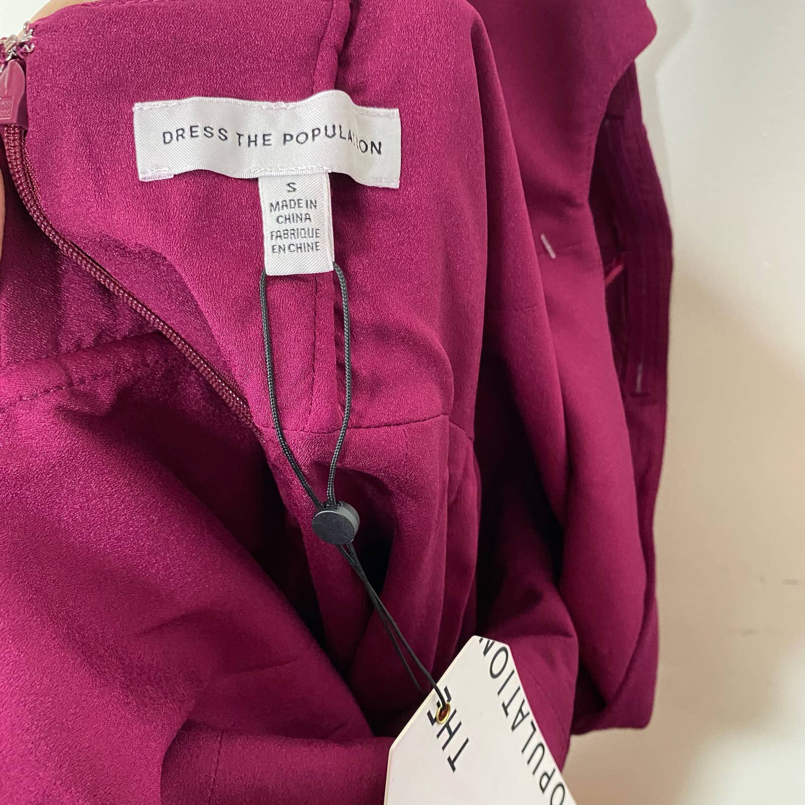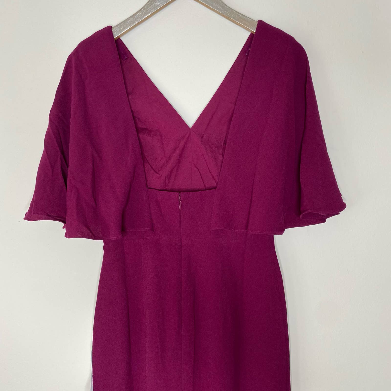 DRESS THE POPULATION Louisa Dark Magenta Deep V Butterfly Sleeve Dress Size Small NEW